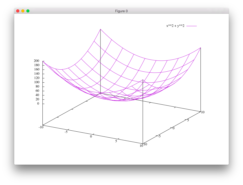 このグラフでは,"set isosamples 40, 40"というコマンドで,面を (40-1) x (40-1)のメッシュに区切っています.